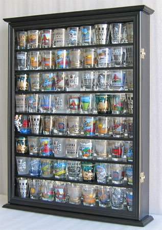 Large 72 Shot Glass / Shooter Display Case Cabinet Rack Holder-Glass Door, Mirror Back-Black Finish (SC13-BL) Reviews